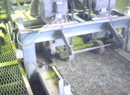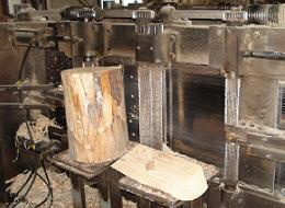 | ■木毛製造機に投入するための準備として、木材を規定の寸法にカットします。 | ||