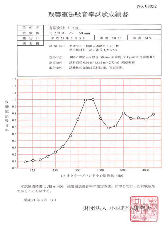 ● ミヒロスーパーの熱伝導率及び熱抵抗試験 検査機関:財団法人 日本建築総合試験所