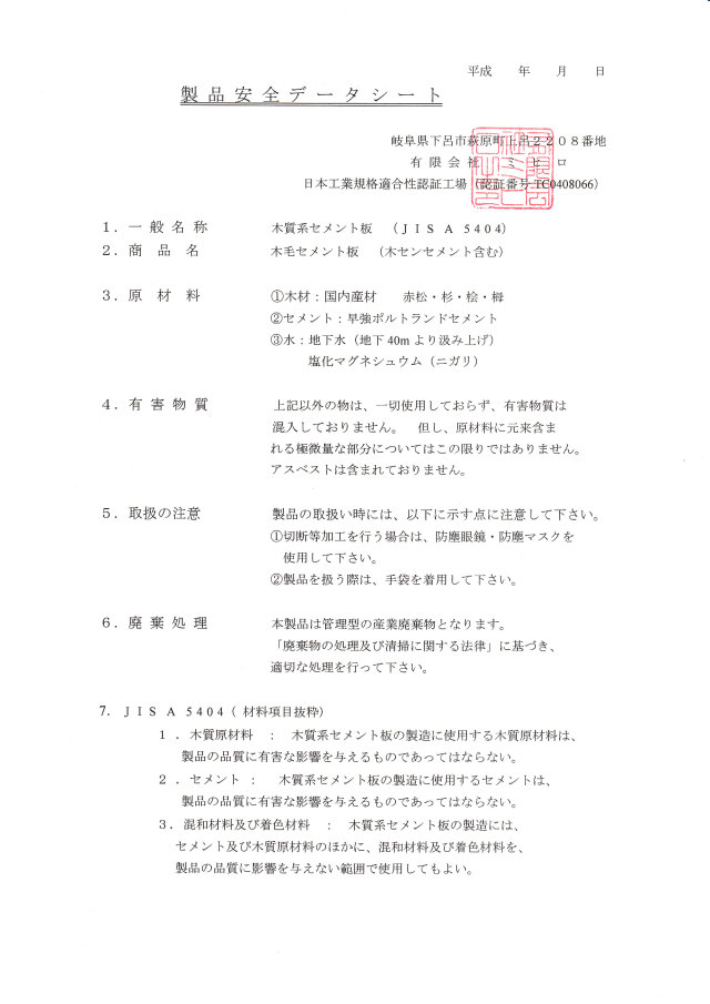 | ミヒロボード(木毛セメント板) | ミヒロス−パ−(モクセン板) | ||