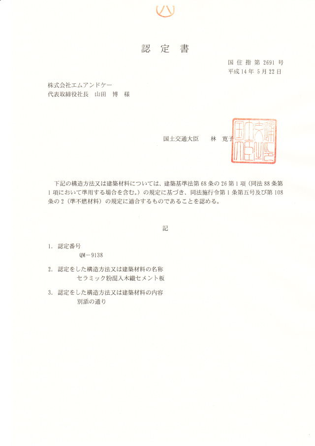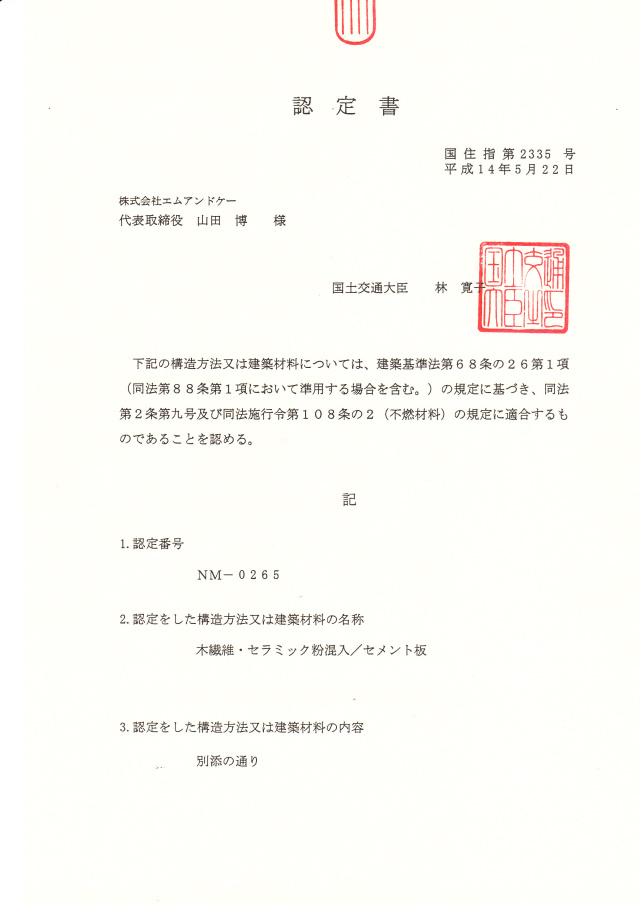 | MKボード認定書 QM-9138 | MKボード認定書 NM-0265 |