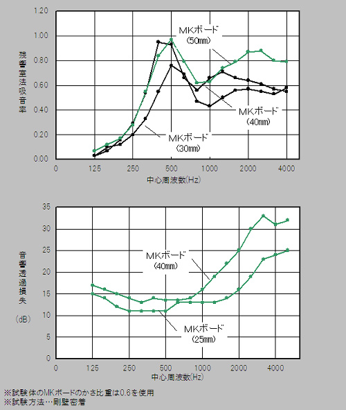 微細な空気泡を持つ細多孔質セラミック粉末や通気性の高い木繊維チップ、そしてボード特有の多重空気層構造によって、MKボードは優れた断熱性能を発揮します。熱拡散率がきわめて小さいため、外気温の変化に左右されず、ボード裏面の温度が安定しているので、省エネルギー効果に優れた効果を発揮します。また吸湿、放湿作用があるので、水分を含んで断熱性能が劣化する心配もありません。