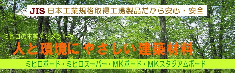 ミヒロの木質系セメント板は国産小径木・未利用材、間伐材から生まれた健康建材です。